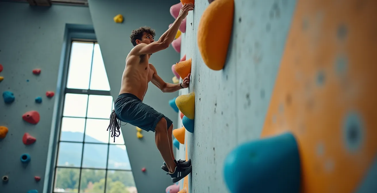 La mobilité active représente un autre bénéfice invisible. Les mouvements d’escalade exigent de combiner force maximale et amplitude articulaire extrême. Pensez à un grand jeté où vous devez simultanément pousser puissamment sur vos jambes tout en atteignant une prise lointaine. Cette combinaison force-souplesse développe une mobilité fonctionnelle impossible à obtenir par des étirements statiques seuls. Comme l’expliquent les avantages d’un mur d’escalade intérieur dans les centres de fitness modernes, cette polyvalence attire ceux qui recherchent une transformation corporelle globale.